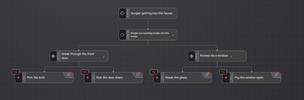 - Root Node(Objective): Burglar successfully breaks into the house.
