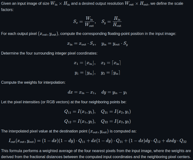 - Scale it to a target resolution using any scaling algorithm (e.g., nearest neighbour, bilinear, bicubic) in C