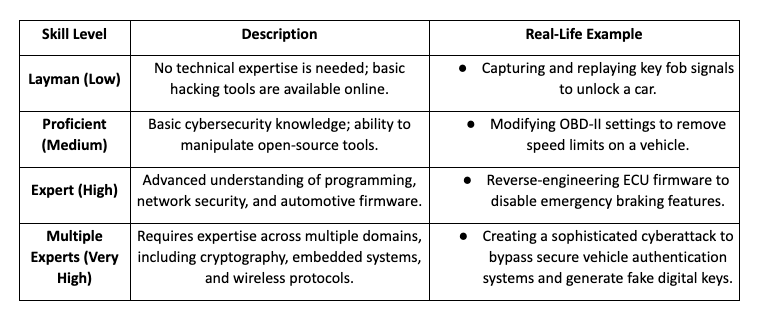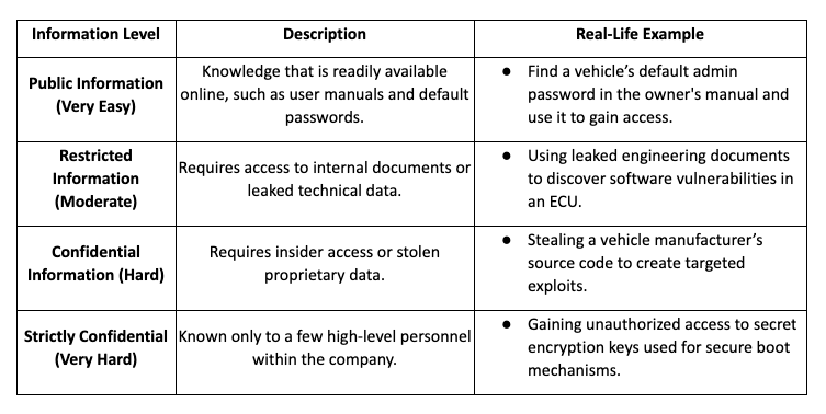 The amount of information required to execute an attack depends on how well-protected the vehicle’s security mechanisms are.